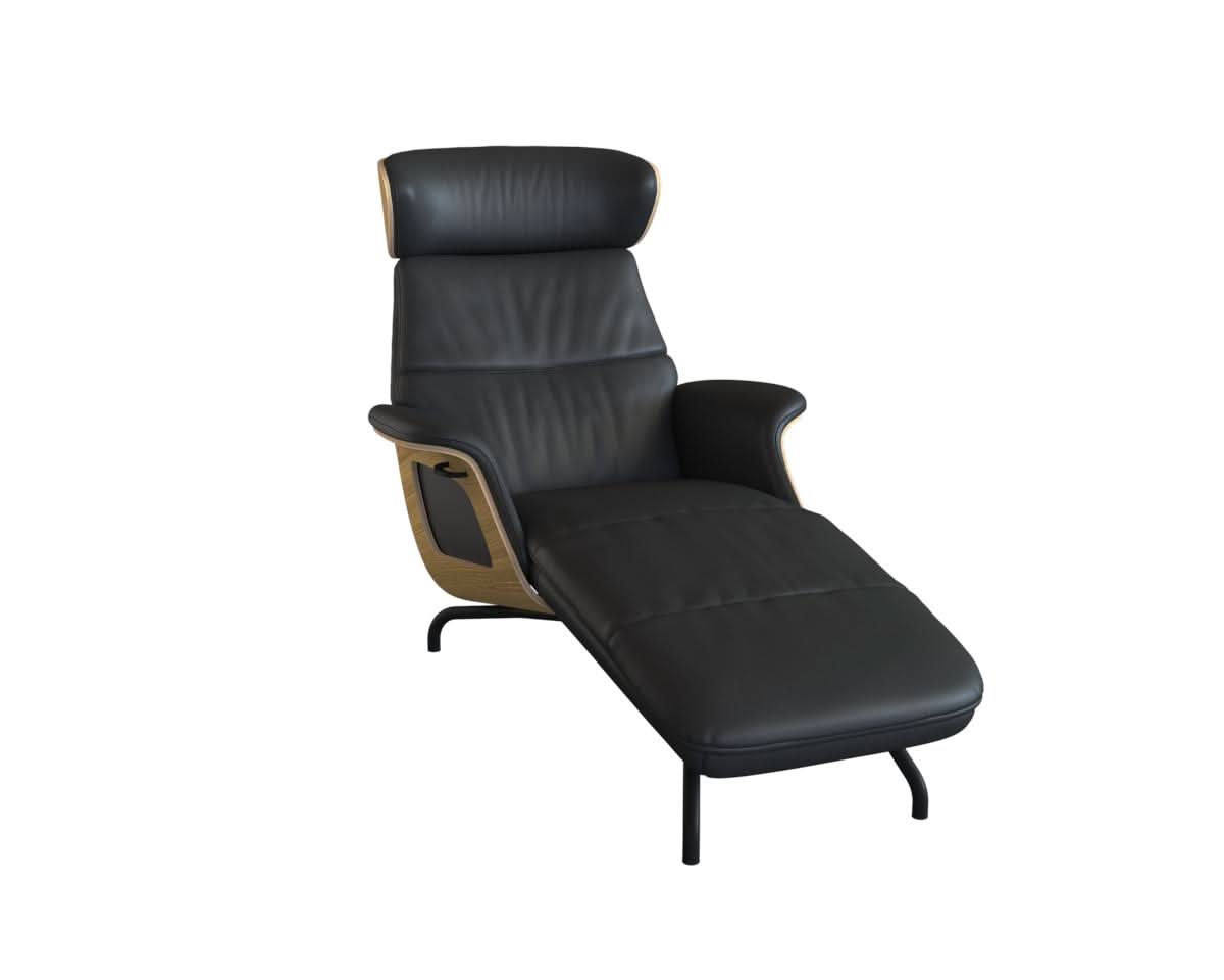 Clement Chaiselongue - Leder Omaha - Black - Eiche